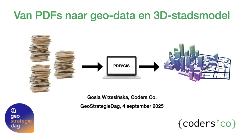 Na de lunch werd de groep verdeeld over drie verschillende sessies en het was moeilijk om te kiezen. Zoveel interessants in de aanbieding. Coders Co. presenteerde in het blok “Bouw en Fysieke leefomgeving” in de kazerne ”PDF2GIS” naast de presentaties “Powerfood voor de Digital Twin” en “Eenvoudig je Digital Twin actualiseren met 3D foto’s”.
